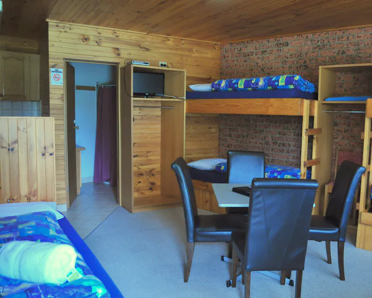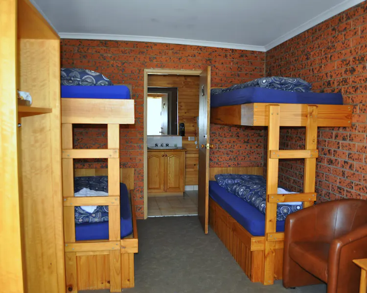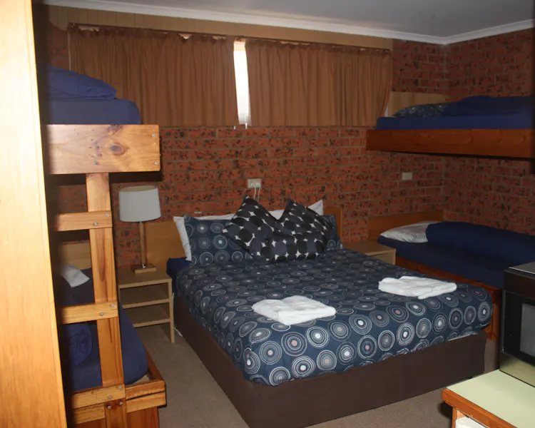 The room is self contained and is equipped with 4 bunk beds and 1 single bed, bathroom with shower and toilet. These rooms are perfect for an overnight Ski Trip, Motorbike, Mountain Bike or Trail Ride.