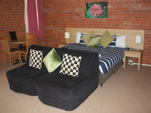 The King rooms are self contained and are equipped with King Bed a bathroom with shower and toilet. These rooms are perfect for couples. All King rooms have a Dining Suite and Sofas, Large LCD TV and DVD Player.